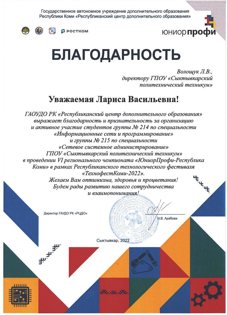 167016, г.Сыктывкар, ул.Старовского, д.22